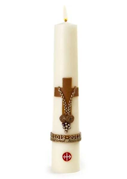In de liturgie van de Paasnacht staat de vreugde om de Verrijzenis van Christus centraal. Deze gezinspaaskaars kan u bij bijzondere levensmomenten aansteken opdat God die in het verborgene is zichtbaar aanwezig komt in uw leven.