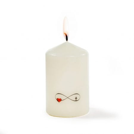 Voel u tijdens dit jubeljaar 2025 verbonden met alle “pelgrims van hoop” door het geloof (kruis) en de liefde (hart) met deze kaars van verbondenheid.