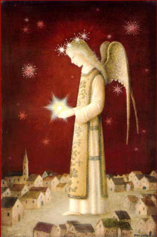 Kerstkaart Bradi Barth – Madonna met Kind en witte lelie