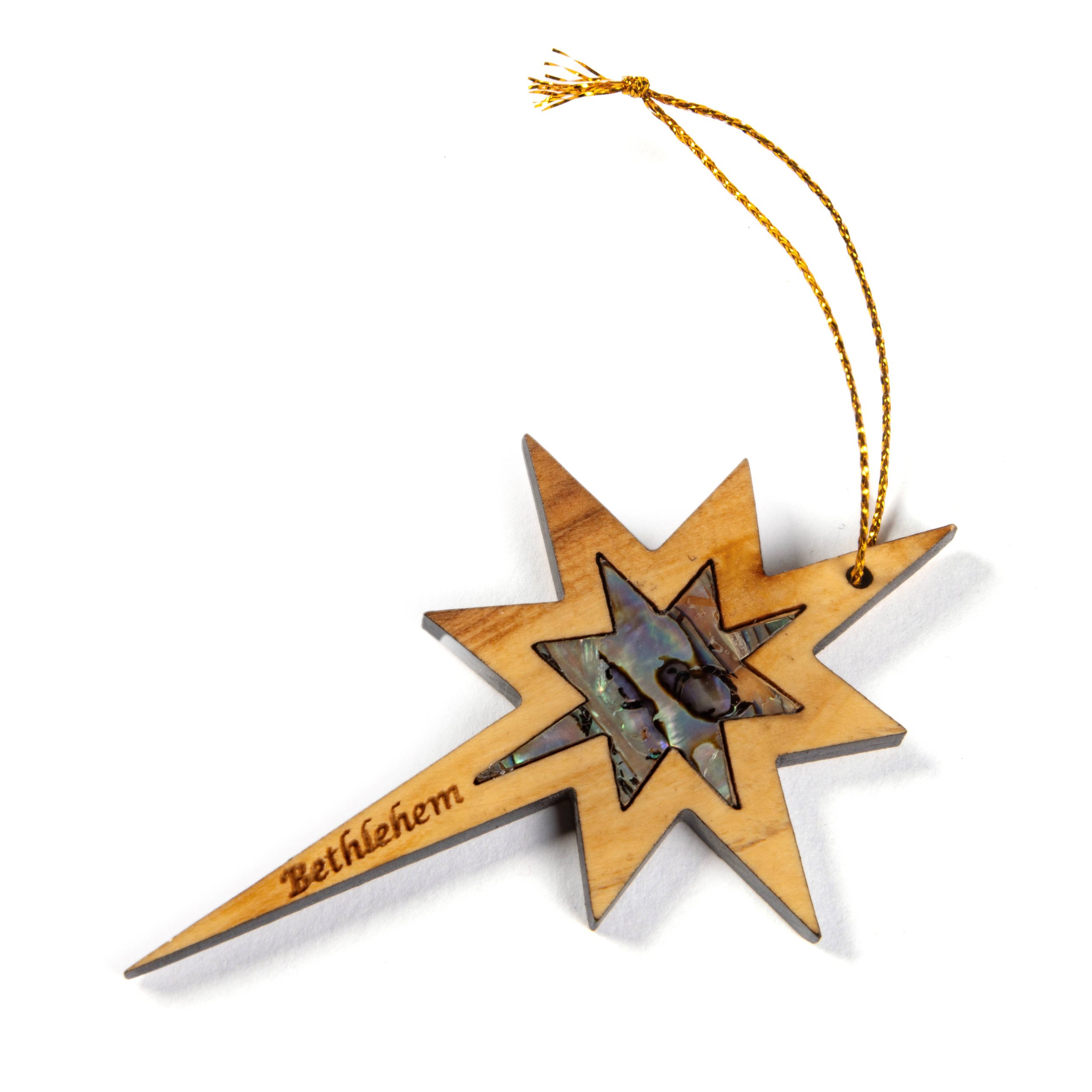 Olijfhouten kerstster met parelmoer