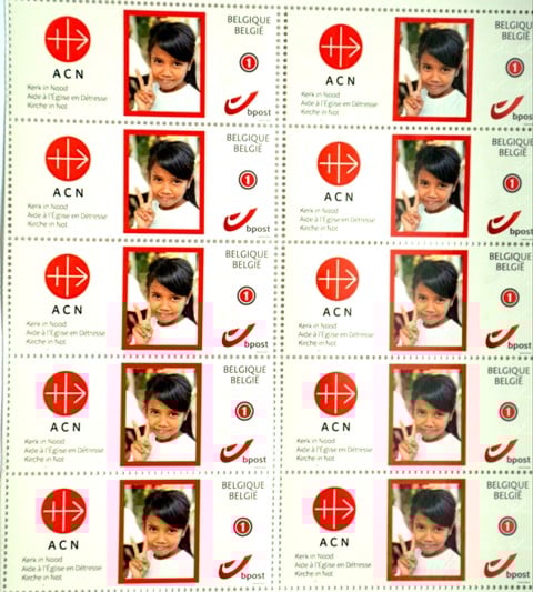 10 zelfklevende postzegels van Kerk in Nood