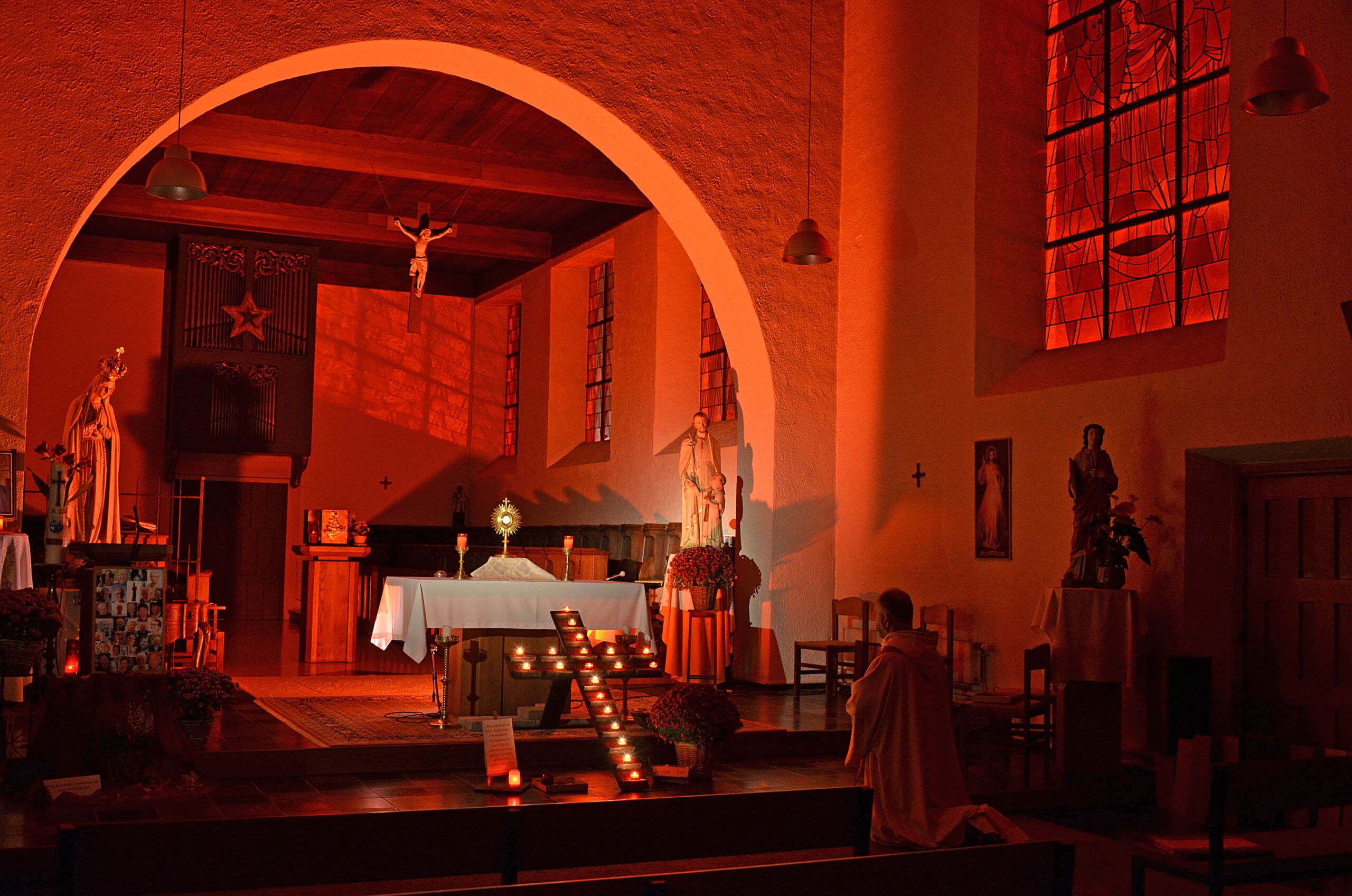Op woensdag 20 november had een gebedsdienst plaats voor de vervolgde christenen. Bij het binnenkomen kleurde de Onze-Lieve-Vrouwebasiliek bloedrood door verschillende rode spots. Het was een verwijzing naar alle bloed dat nog steeds nodeloos vergoten wordt. Overal in de wereld worden christenen vervolgd en gedood. De gebedsavond begon met de film ‘Helden van het geloof’ met aangrijpende getuigenissen uit Irak, Nigeria, Pakistan en Sri Lanka. Aanslagen, mensen die gefolterd en gedood worden voor hun geloof, martelaren, … en helden die nog groter leed konden voorkomen door een aanslag te verijdelen met hun eigen leven.