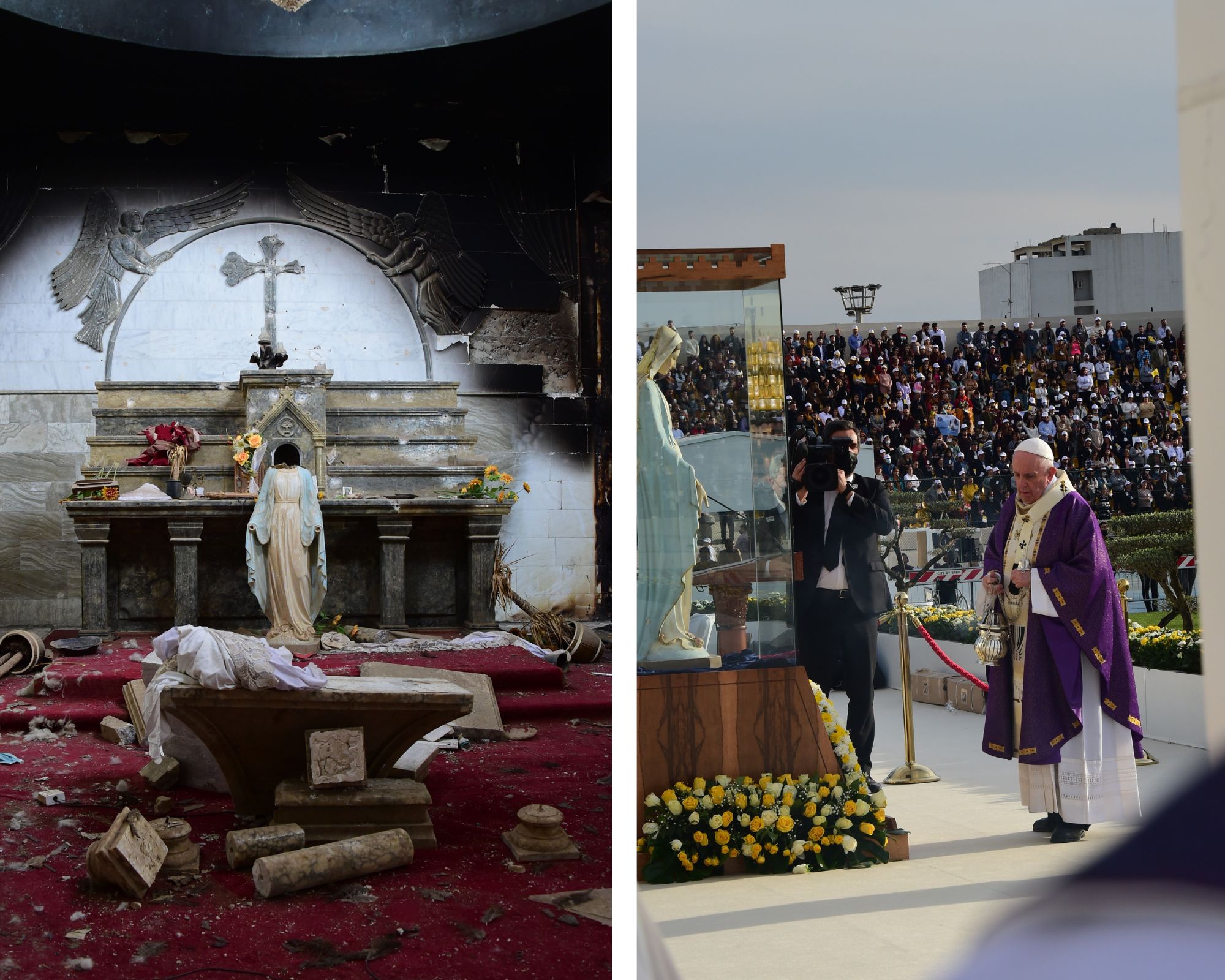 Op deze plek, waar eens haat regeerde, brengt u via hen vrede. De kerk van Onze-Lieve-Vrouw in Karamlesh werd ontheiligd door geweld. U herinnert zich misschien het beeld van Maria, onthoofd door haat, en later – in maart 2021 – hersteld en gezegend door paus Franciscus in Erbil. Nu wordt deze kerk met liefde en eenvoud bewoond door deze vier mannen van geloof. Ze hebben een bijzondere liefde voor de eucharistische aanbidding en streven ernaar de liefde voor de Eucharistie onder de gelovigen te bevorderen. Ze werken met hun handen in de schrijnwerkerij, delen boeken uit in hun kleine winkel, verzorgen ouderen die zichzelf niet meer kunnen wassen.