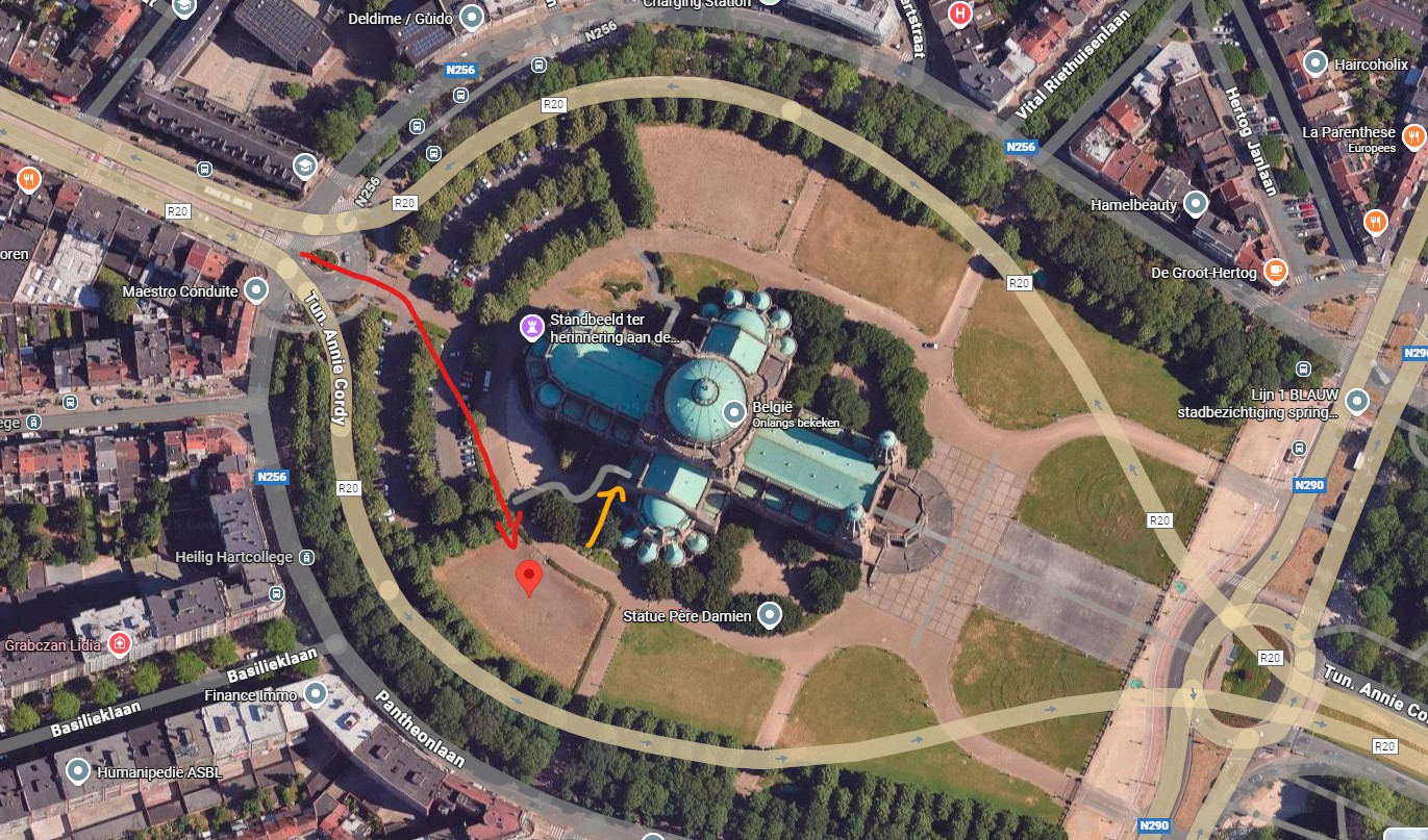 Parkeren kan op de privéparking “Giovanni” tegenover ingang 6 van de Basiliek, zie de rode stip op de kaart hieronder. Het gele pijltje is ingang 6 van de Basiliek, de ingang voor dit evenement.